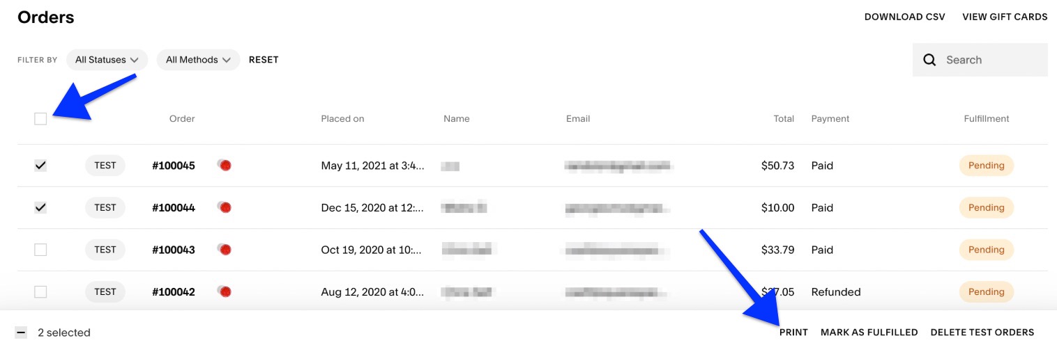 Printing orders